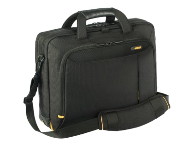 La sacoche Meridian II pour ordinateur portable à ouverture par le haut de Targus est une sacoche de transport élégante offrant diverses options de rangement. Conçue pour transporter les ordinateurs portables avec des écrans de 39,62 cm (15,6") maximum, elle est pourvue d'un compartiment rembourré qui protège votre ordinateur portable pendant le transport. Son revêtement en nylon résistant, renforcé à sa base pour protéger le contenu des intempéries, absorbe les chocs et donne à cette sacoche un aspect élégant. Le compartiment avant comporte une poche pour téléphone portable, des boucles pour stylos, un porte-carte et différentes poches destinées aux supports de stockage. Tout est à portée de main. Son porte-documents extensible maintient vos documents en ordre pendant le transport. Sa bandoulière rembourrée pour un confort accru est réglable et dotée de crochets en métal et d'anneaux en D. Le revêtement intérieur doux de qualité supérieure permet de transporter vos objets de valeurs sans risquer de les endommager et ajoute une touche d'élégance. La sacoche Meridian II intègre le système breveté SafePort Sling qui protège vos ordinateurs portables en cas de chute. En outre, cette sacoche élégante à ouverture par le haut comporte deux supports amovibles brevetés Targus pour votre bouteille d'eau et vos billets d'avion. Les poignées recouvertes de cuir sont magnétisées, afin de garantir un transport confort et pratique.