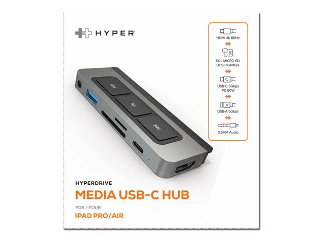 HyperDrive 6-in-1 USB-C Media Hub - Station d'accueil - USB-C - HDMI - pour Apple 10.9-inch iPad Air (4th generation, 5th generation); 11-inch iPad Pro (1st generation, 2nd generation, 3rd generation); 12.9-inch iPad Pro (3rd generation, 4th generation, 5th generation); iPad mini (6th generation)