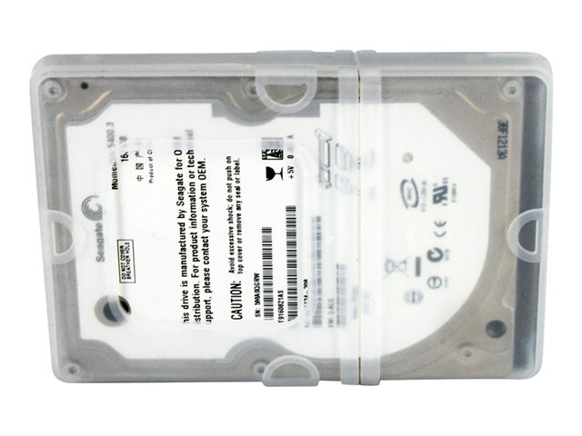 Cet étui de disque dur polyvalent est compatible avec presque tous les HDD IDE et SATA/SAS 2,5 pouces. L'étui en silicone est doté d'un embout spécialement conçu pour protéger les ports d'interface du disque dur lors du transport, mais qui peut être enlevé pour l'installation.