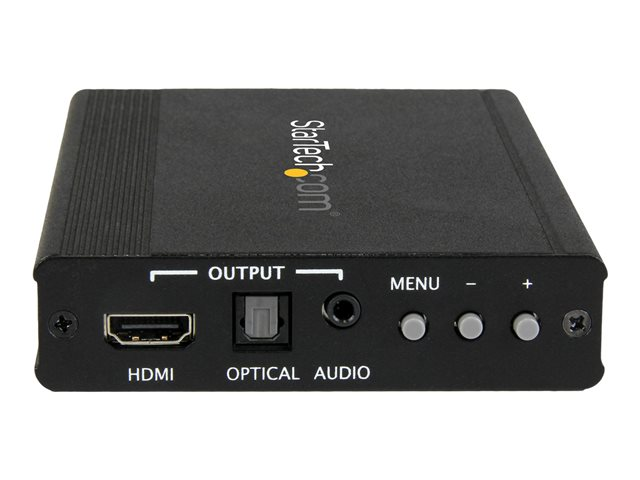 Le convertisseur et scaler est équipé d'entrées audio de 3,5 mm et optiques vous permettant aussi d'associer l'audio à la sortie HDMI. Le scaler crée un signal numérique aux résolutions élevées, ce qui est parfait pour mettre de l'ancien équipement vidéo VGA à niveau afin de le rendre compatible avec un téléviseur ou un projecteur HDMI plus récent.