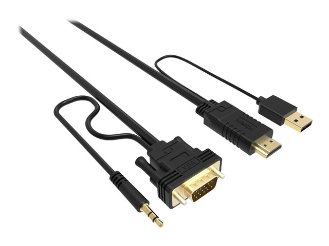 VISION Techconnect - Câble vidéo/audio - HDMI, USB (alimentation uniquement) mâle pour HD-15 (VGA), mini-phone stereo 3.5 mm mâle - 2 m - noir - alimentation USB