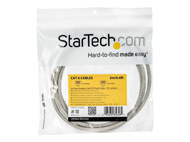 StarTech.com Câble réseau Cat6 Gigabit UTP sans crochet de 2m - Cordon Ethernet RJ45 anti-accroc - Câble patch Mâle / Mâle - Gris - Cordon de raccordement - RJ-45 (M) pour RJ-45 (M) - 2 m - UTP - CAT 6 - sans crochet - gris N6PATC2MGR