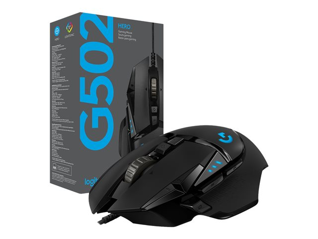 Souris de jeu Logitech G502 (Hero) - Souris - optique - 11 boutons - sans fil, filaire - 2.4 GHz - récepteur sans fil USB