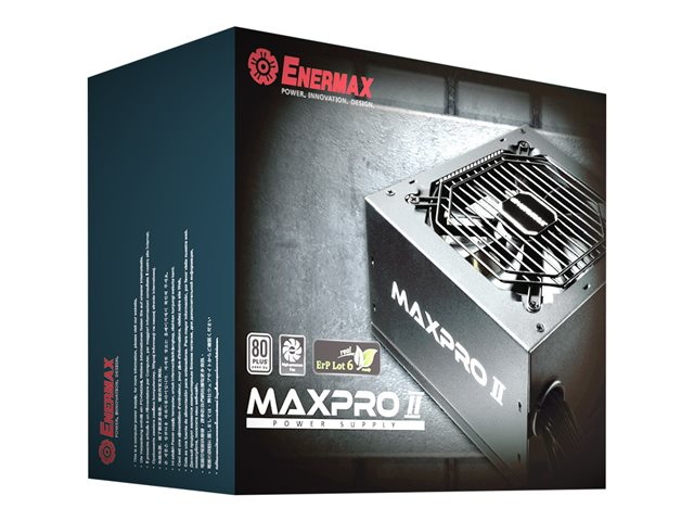 La série Enermax MAXPRO II est l'une des alimentations les plus durables conçues par Enermax. Développée spécifiquement pour le marché européen, la MAXPRO II se démarque des autres par un fonctionnement silencieux et particulièrement efficace. La MAXPRO II offre un rendement inédit de 87% et une consommation en veille inférieure à 0,5 watt.