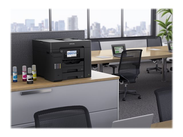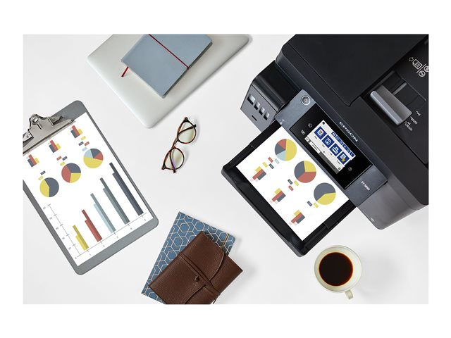 En plus d'offrir un coût d'impression par page extrêmement faible, cette imprimante EcoTank simple d'utilisation réalise vos impressions, numérisations, copies et fax. Les travaux A4 peuvent être réalisés rapidement grâce à la haute vitesse d'impression et de numérisation, aux deux bacs papier A4 à chargement frontal de 250 feuilles, au chargeur de papier arrière de 50 feuilles et au chargeur automatique de documents (ADF) A4 de 50 feuilles. Imprimez selon vos préférences grâce à l'impression mobile, à la connexion Ethernet et à un écran tactile LCD de 10,9 cm.