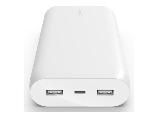 Belkin BOOST CHARGE - Banque d'alimentation - 20000 mAh - 3 connecteurs de sortie (USB, 24 pin USB-C) - sur le câble : USB, USB-C - blanc