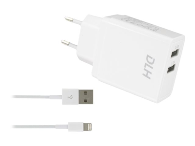DLH DY-AU2551W - Adaptateur secteur - 12 Watt - 2.4 A - 2 connecteurs de sortie (USB) - blanc