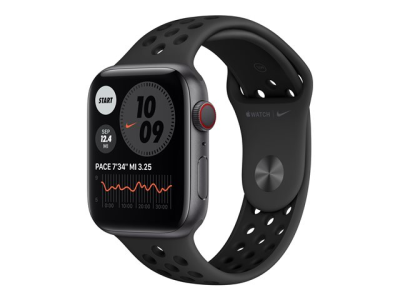 Apple Watch Nike Series 6 (GPS + Cellular) - 44 mm - espace gris en aluminium - montre intelligente avec bracelet sport Nike - fluoroélastomère - anthracite/noir - taille du bracelet : S/M/L - 32 Go - Wi-Fi, Bluetooth - 4G - 36.5 g M09Y3NF/A