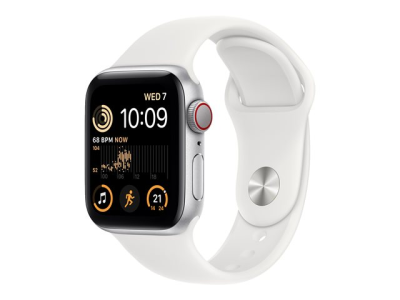 Apple Watch SE (GPS + Cellular) - 2e génération - 40 mm - aluminium argenté - montre intelligente avec bande sport - fluoroélastomère - blanc - taille du bracelet : Normal - 32 Go - Wi-Fi, LTE, Bluetooth - 4G - 27.8 g