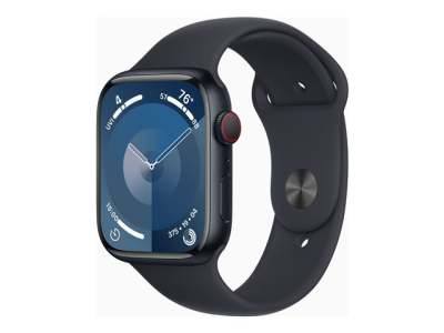 Apple Watch Series 9 (GPS + Cellular) - 45 mm - aluminium minuit - montre intelligente avec bande sport - fluoroélastomère - minuit - taille du bracelet : M/L - 64 Go - Wi-Fi, LTE, UWB, Bluetooth - 4G - 39 g
