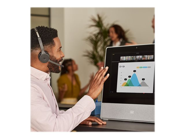 Les fonctionnalités des casques Cisco 720 améliorent votre expérience d'écoute en intégrant tout ce dont vous avez besoin dans un casque professionnel, au bureau comme à la maison. Le design léger et supra-auriculaire offre des options d'oreillettes en cuir simples ou doubles, ainsi qu'un bandeau rembourré qui assure un confort tout au long de la journée. La technologie sans fil Bluetooth permet de connecter facilement jusqu'à deux périphériques simultanément et de recevoir des notifications intra-auriculaires, de trouver l'emplacement optimal du microphone grâce à son bras pivotant à 276 degrés avec basculement pour couper le son, et de participer à des réunions en toute simplicité grâce au tout nouveau bouton unique de participation aux réunions Webex. Ce casque offre des intégrations poussées avec les applications Cisco et certains téléphones IP et périphériquesCisco, pour une expérience d'utilisation intuitive et une gestion IT intelligente des casques dans l'ensemble de l'écosystème Cisco.