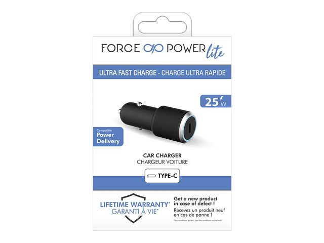 BIGBEN Connected Force Power - Adaptateur d'alimentation pour voiture - 25 Watt - PD (24 pin USB-C) - noir FPLICAC1C25WPDB