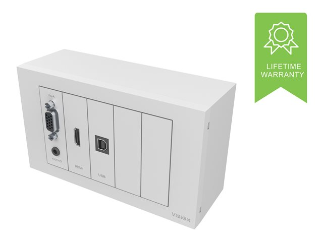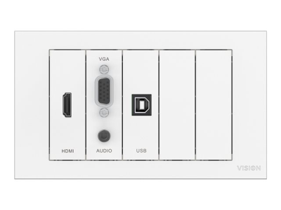 VISION TechConnect TC3 Wall-Mount Faceplate Package - Kit plaque modulaire avec connecteurs enclenchables - HD-15, fiche mini-phone Stéréo 3,5 mm, HDMI, USB Type B - blanc mat