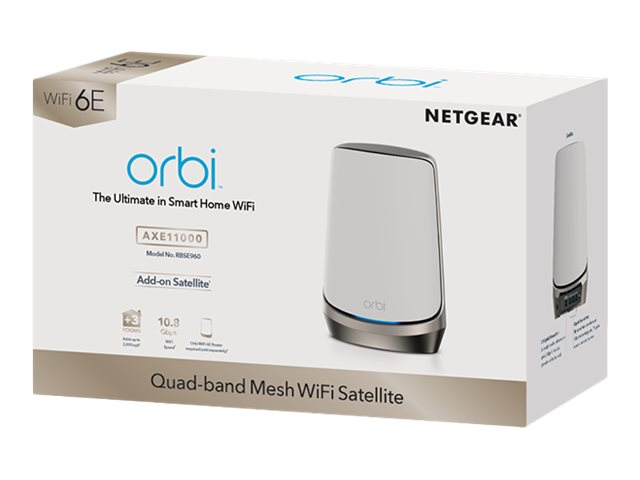 NETGEAR Orbi RBSE960 - - système Wi-Fi - (rallonge) - jusqu'à 3000 pieds carrés - maillage - 10GbE, 2.5GbE - Wi-Fi 6E - Multi-Bande RBSE960-100EUS