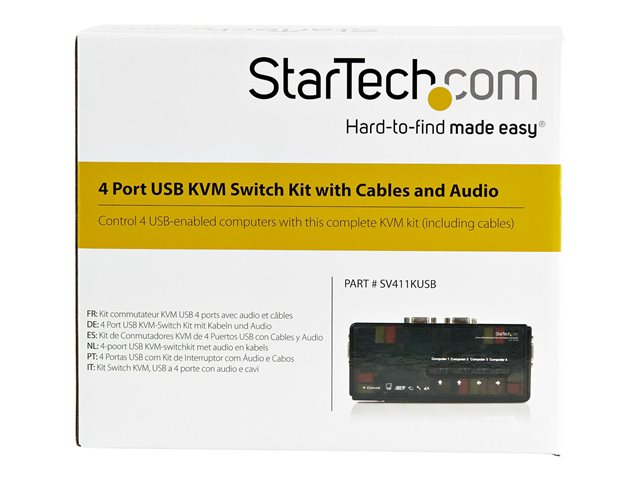 StarTech.com Switch KVM USB VGA à 4 ports avec câbles - Kit commutateur écran clavier souris - Noir - Commutateur écran-clavier-souris/audio - 4 x KVM / audio - 1 utilisateur local - de bureau SV411KUSB