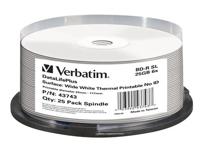 Verbatim DataLifePlus - 25 x BD-R - 25 Go 6x - surface imprimable thermique large - spindle 43743